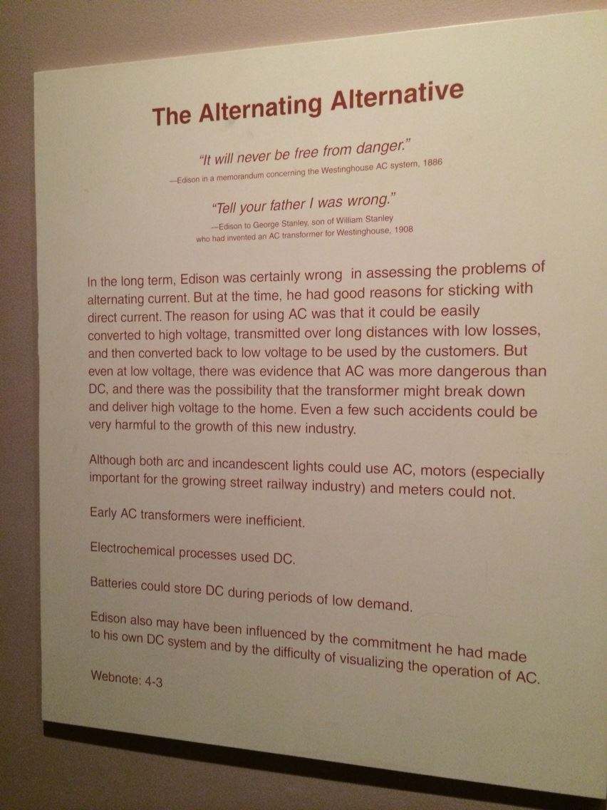 U prilogu će biti dostavljene fotografije iz američkog nacionalnog istorijskog muzeja (Smithsonian), na kojima se jasno vidi da je Tomas Edison u velikoj meri zastupljen, dok je Nikola Tesla gotovo potpuno odsutan.